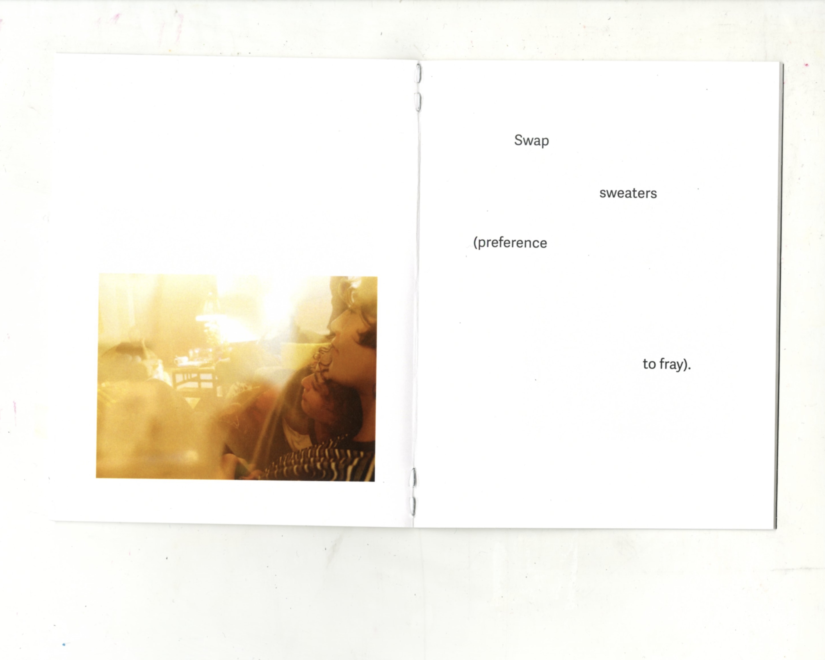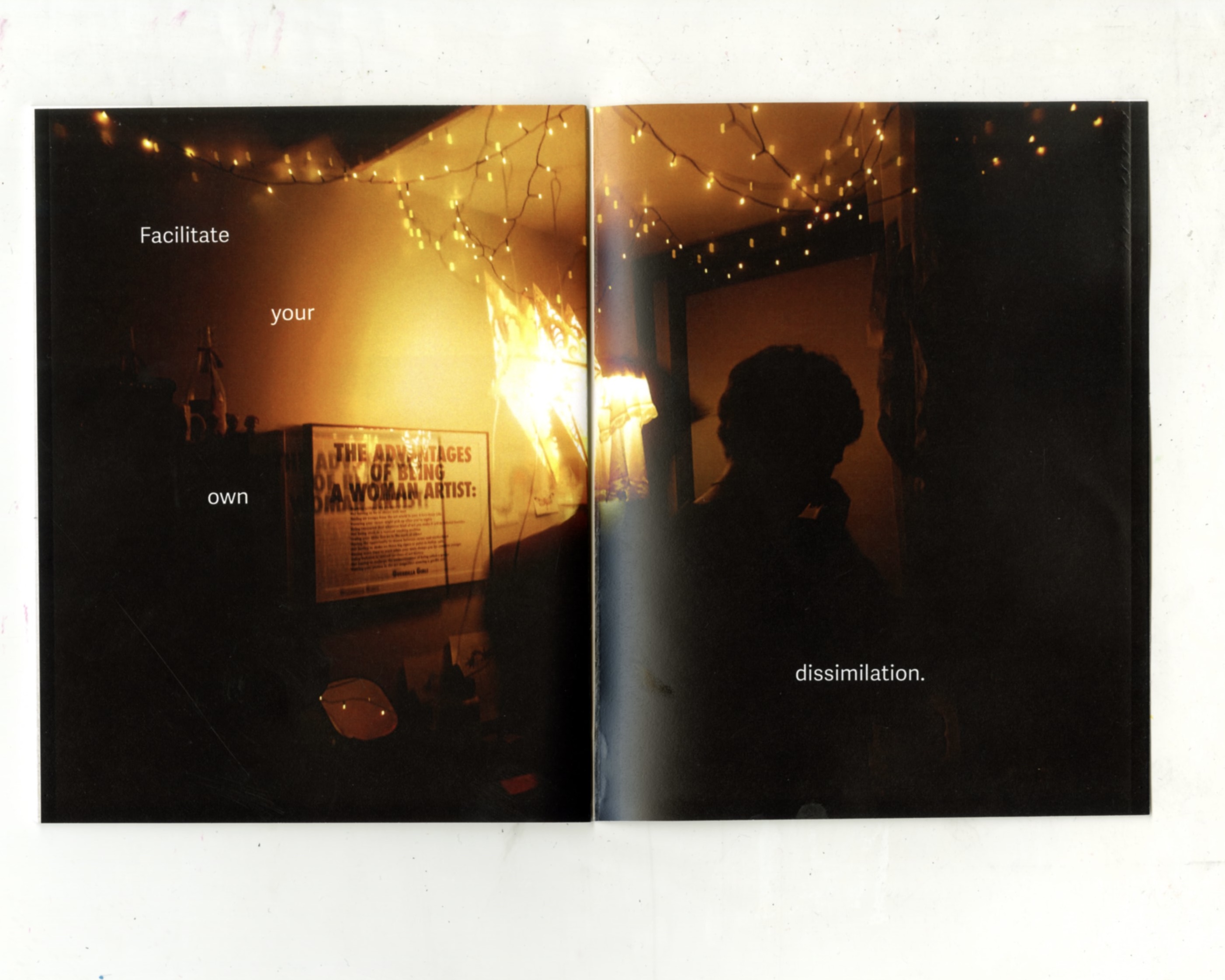 This project was heavily inspired by 90s Riot Grrrl zine culture, which facilitated community between non-male identities. I was inspired by how the zine became a tangible manifestation of safe vulnerability. I photographed my non-male identifying friends in their homes to visualize this feeling of safety and community, choosing to layer the images over themselves to enhance their blurriness and warmth, creating a sense of unspecific feelings of comfort. Many Bikini Kill zines of the 90s began with a list of rules for their readers, such as ‘Selectively ignore all oppressive laws,’ and ‘Recognize vulnerability and empathy as strengths.’ I wrote my own list of rules that I associate with my friendships, conjoining our playfulness with notions of community-building.